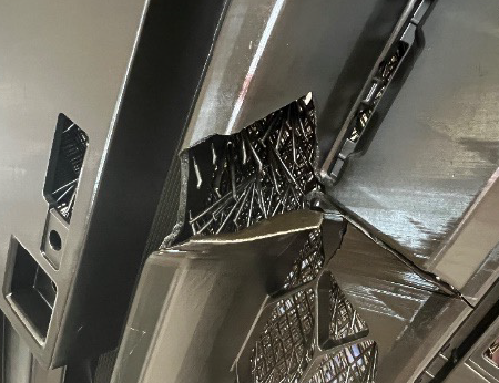 Part design has significant structural weakness in its shape causing structural failure.