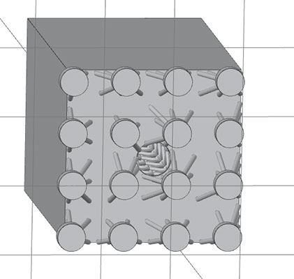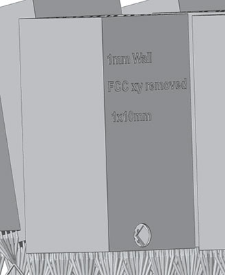 • Use a lattice to replace solid elements, VoxelDance Additive software will ensure a strong lattice support network, reducing mass and therefore shrinkage.