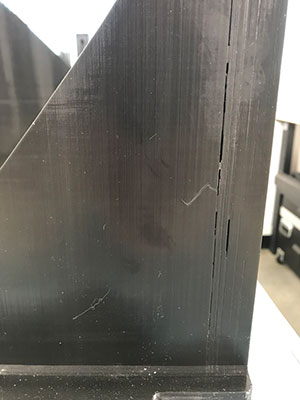 Vertical line that travels all way up the part.
