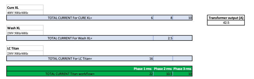 For the Titan full workflow, including Wash XL and Cure XL to be selected based on the below requirements: Link to transformer