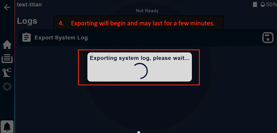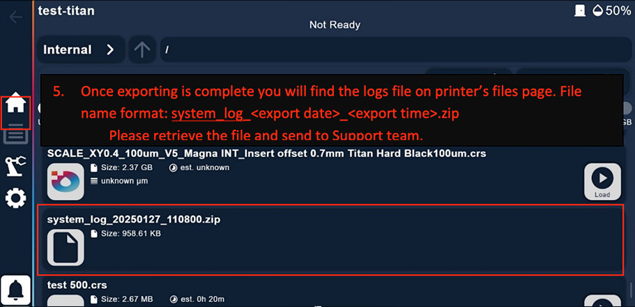 In cases where a higher extraction flow rate must be used, most of the fumes can be removed from Titan in a few minutes. After each print is finished, turn on the extraction for a short period of time before opening the printer door.